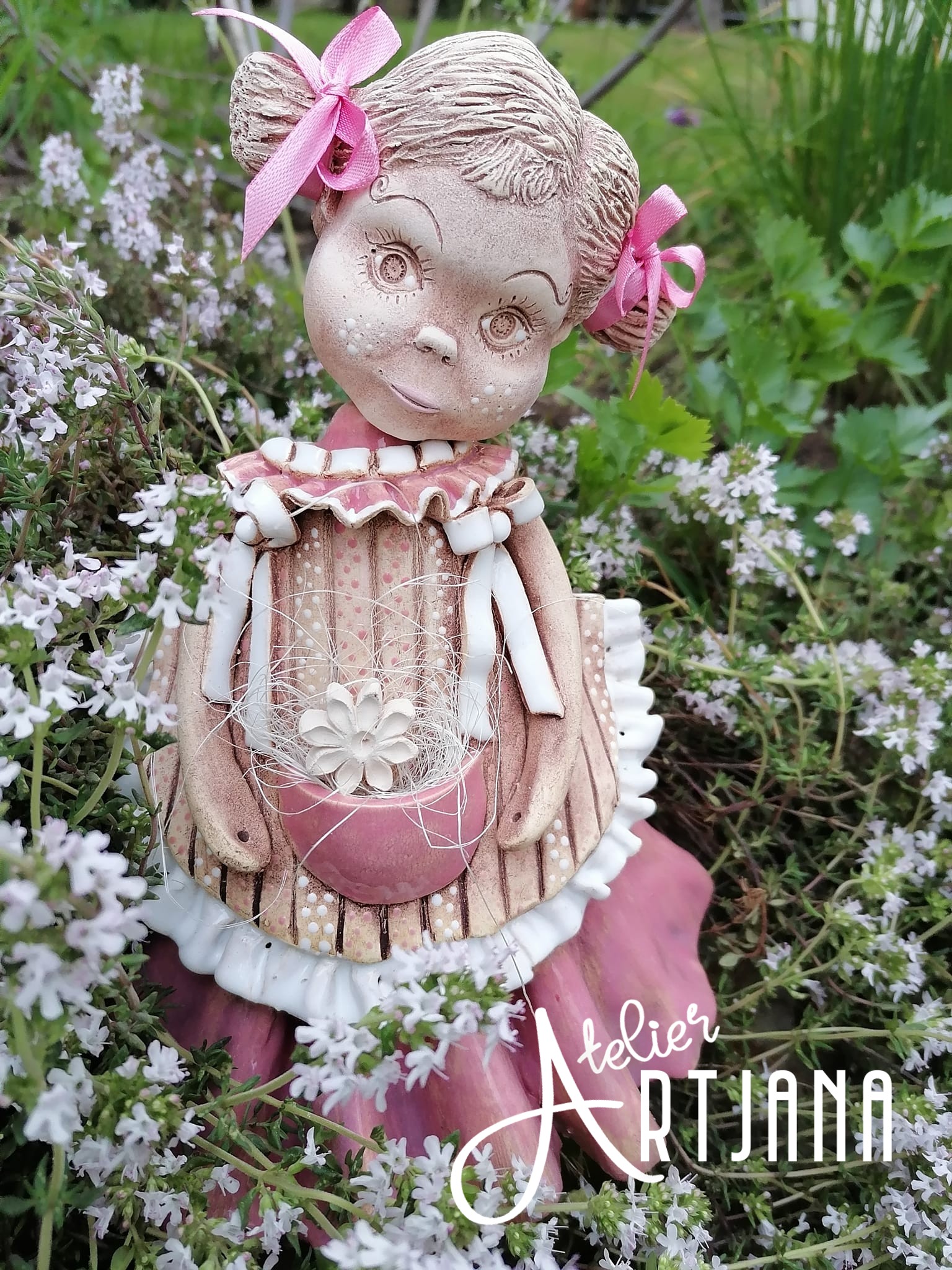Keramická ručně modelovaná panenka, pologlaz, výška cca 25 cm. Na přání je možné udělat podobnou, jinak barevnou či jinak stylizovanou.